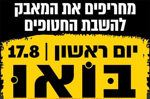החל מ-13:00 - יציאה מרוכזת לכיכר החטופים בתל אביב. פעולות בכיכר, מעגלי שיח וחיבוק המשפחות.