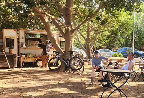 השלושה פתחו את העגלה ביקב שורק שבקיבוץ נחשון, בשטח פתוח, תחת עצים שמספקים הרבה צל. "השילוב בין היקב לעגלת הקפה נראה לנו מושלם", הם מסבירים. "אפשר לשלב את הביקור אצלנו עם סיור ביקב, וליהנות מיין טוב ומגבינות לצד המנות שבעגלה. אנחנו גם ממוקמים בסמוך לכביש 1, במרחק קצר מערים כמו ראשון לציון, ירושלים, מודיעין וגדרה, וקרובים למסלולי טיול רבים, כגון פארק קנדה, לטרון ומיני ישראל".